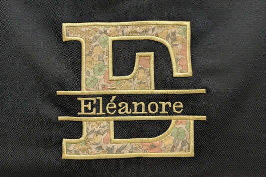 Personalize a one-of-a-kind piece with your chosen name and thread color for a special touch. The first letter is filled with the fabric of your choice from a large range of beautiful fabrics.
