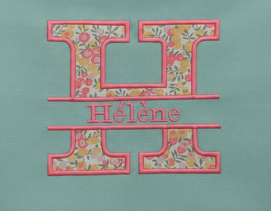 Poppy - Personalize a one-of-a-kind piece with your chosen name and thread color for a special touch. The first letter is filled with the fabric of your choice from a large range of beautiful fabrics. Be creative!